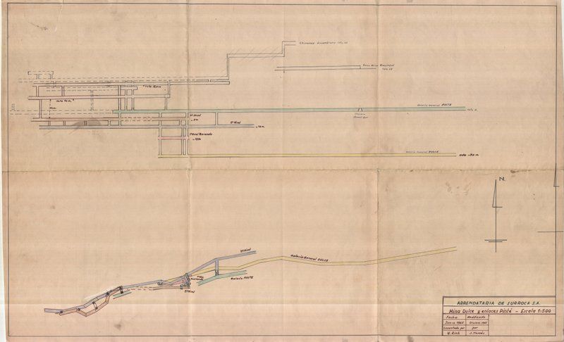 Aquest plànol escala 1:500 va estar aixecat pel Director de la Arrendatària De Surroca SA al Juny de 1965 i modificat per S. Tomàs al Desembre de 1965, ja les acaballes de l’explotació.